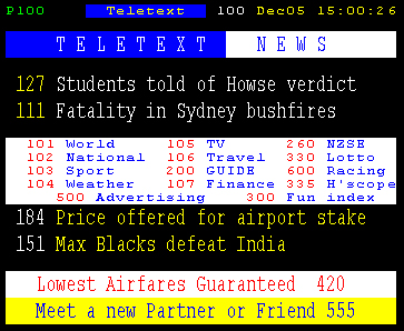 (owned by the NZ Government, Teletext in New Zealand has been neglected for a number of years now, in favour of TVNZ's |